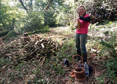 Willow weaving share day in the woods. We hosted half a dozen weavers and Andy led a session on Ash splint making for basketry and Richard taught us how to make a lobster pot, and gave us the demo pot that he made, which Tom had helped with! | |