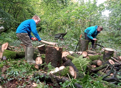| During the Easter weekend, we were joined by several volunteers who helped us with some woodland management work and in preparing the workshop area for the forthcoming season of green woodworking courses. The tasks undertaken included: Bramble clearing and tree-pruning in the young plantation areas. Construction of a dead hedge. Floor renovation in the utility shelter using wood chippings. Construction of two new benches for the utility shelter Replacing the old board-walk with a wider one constructed from Sallerton Wood and Kelly House Oak. A big thank-you from the Sallerton Wood Team to all of you who helped during this week. | |